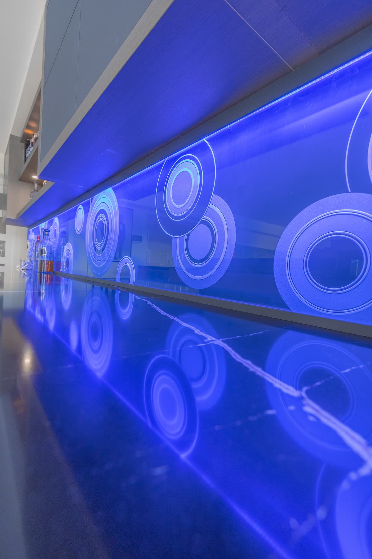A bold and artistic approach to architectural glass, fused panels combine textures and colors to create striking statements for lobbies, galleries, and luxury interiors.