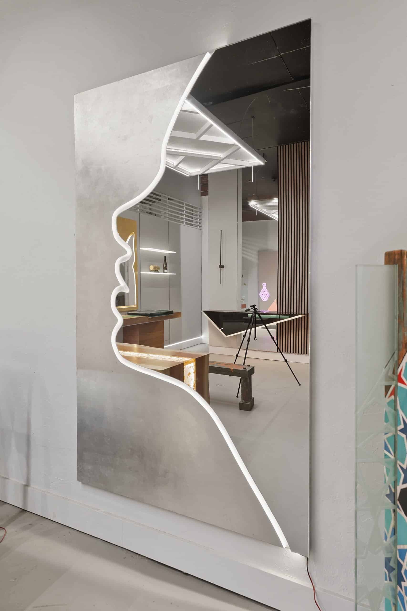 Infinity Mirror Glass Installation. Backlit Silhouette Mirrors